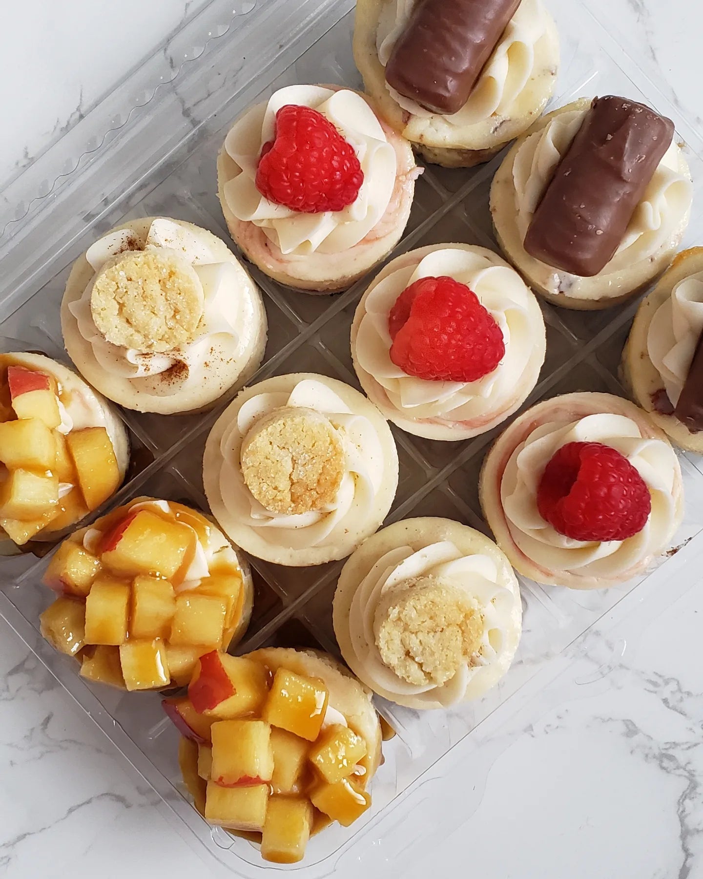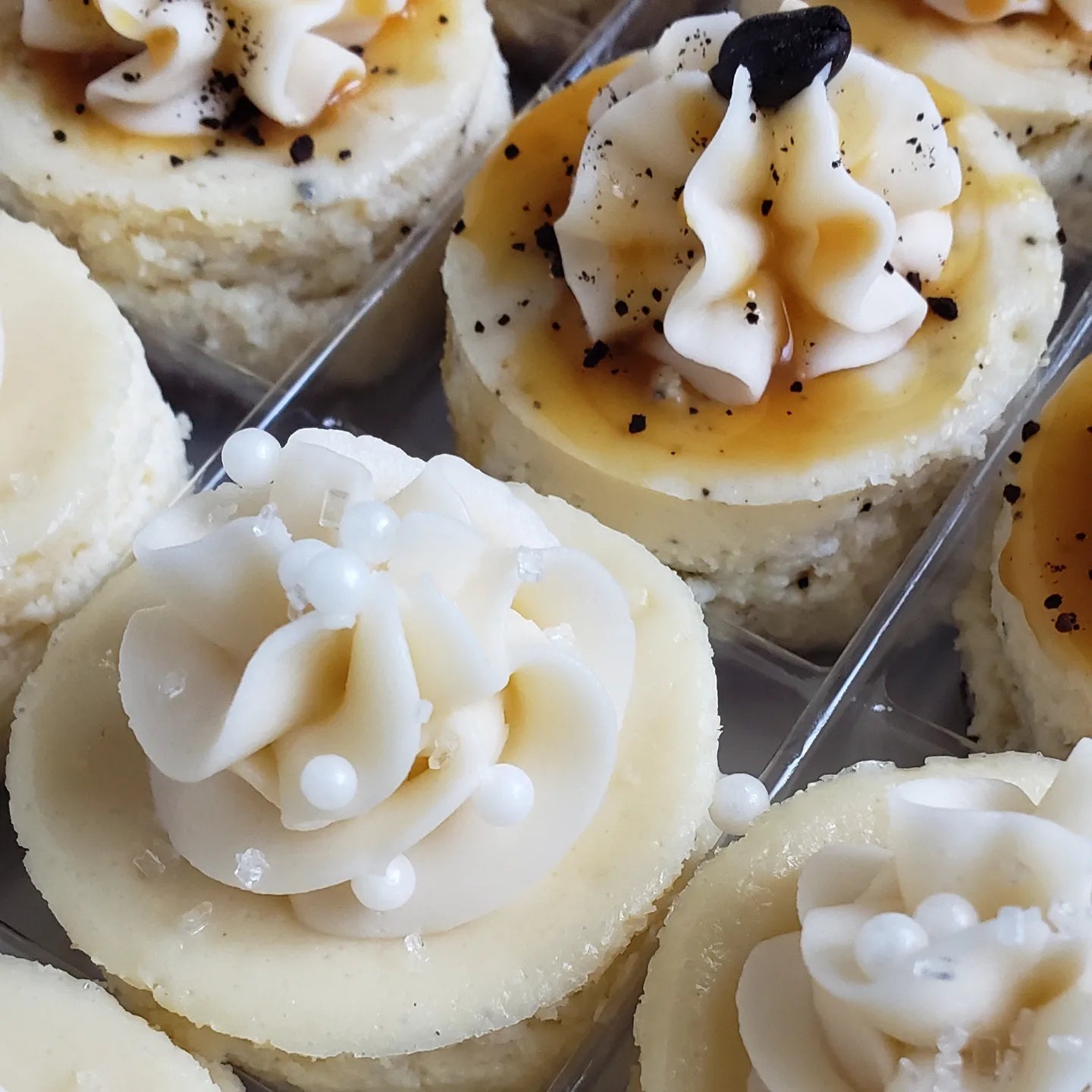 Miniature cheesecakes are offered by the dozen and are perfect for snacking or sharing